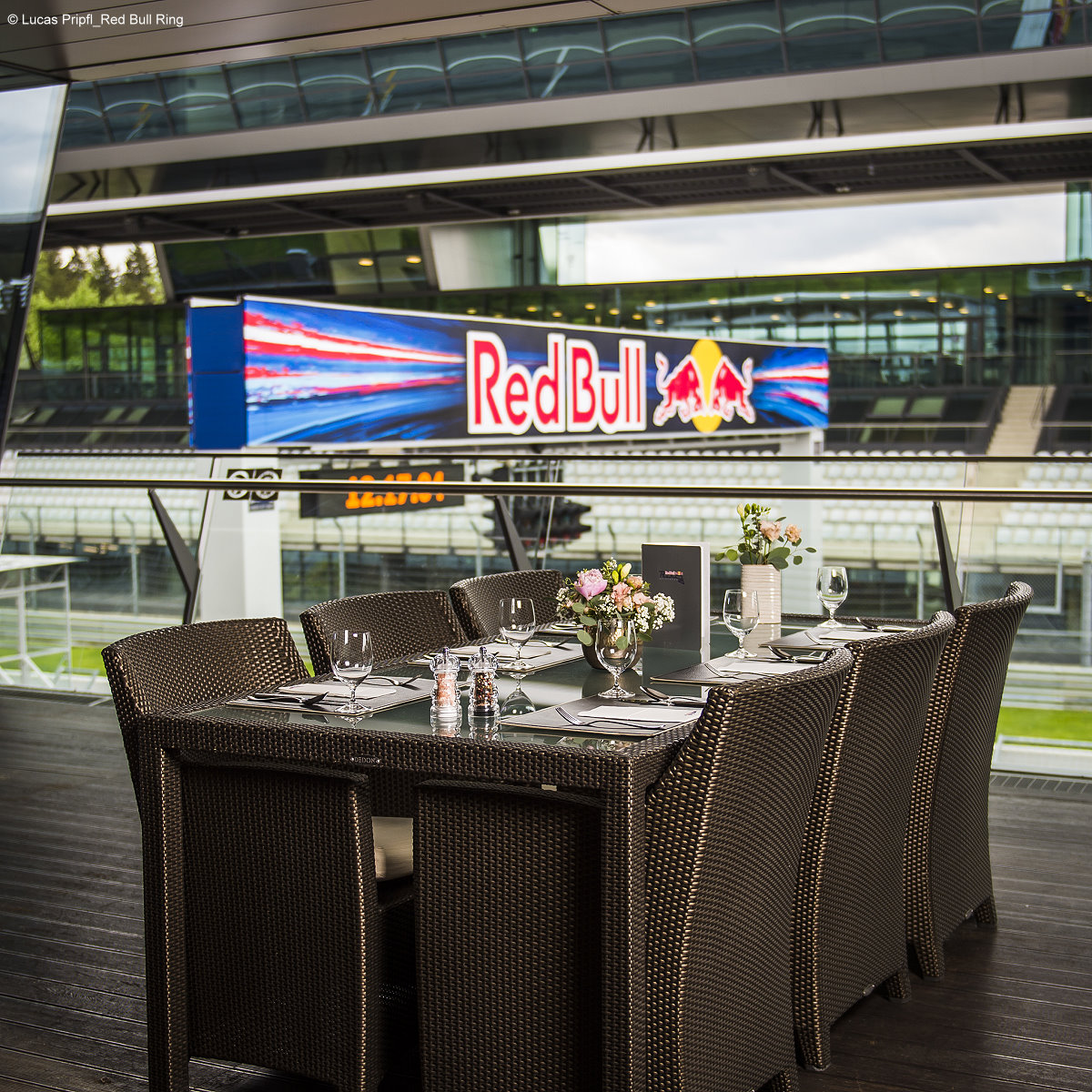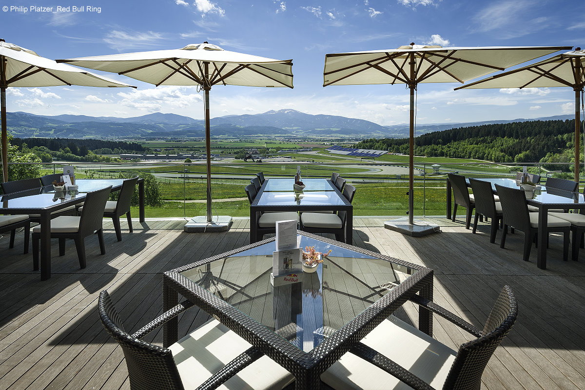 Nach der Tour wartet dann die Bulls Lane, wo du dich auf der Terrasse direkt oberhalb der Boxengasse verwöhnen lassen kannst. Oder willst du einen fantastischen Blick über das gesamte Red Bull Ring Areal? Dann ist das Landhotel Schönberghof der perfekte Ort für dich.
