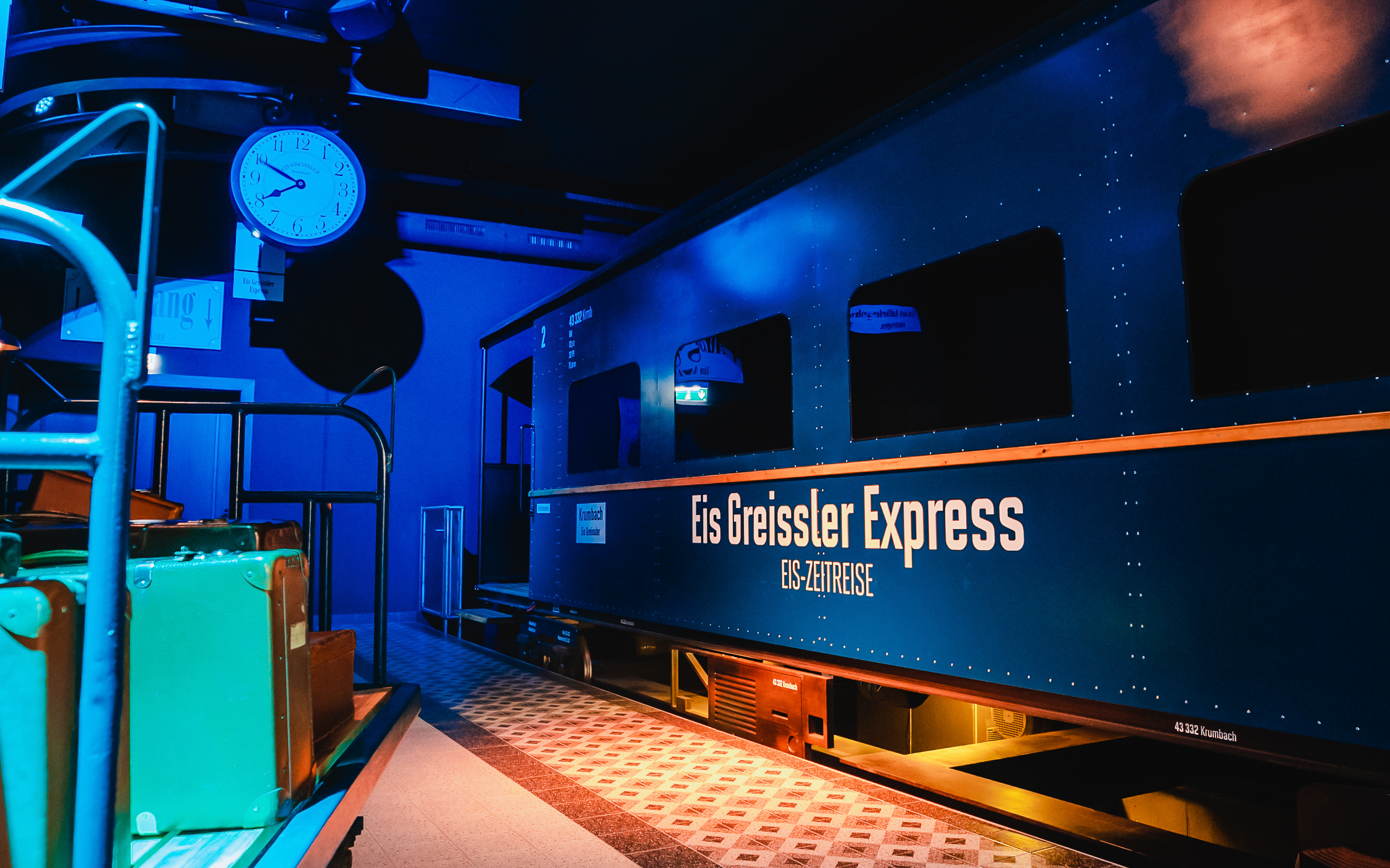 In Krumbach erwartet Sie eine Erlebnisfahrt durch die Eis-Geschichte. Erleben Sie Eis-Geschichte mit allen Sinnen – und zwar tatsächlich mit allen Sinnen! Fühlen Sie sich im Express-Zug Jahrtausende zurückversetzt in die Krumbacher Eis-Zeit. Fliegen Sie im Flying Theater - einem multidimensionalen Erlebniskino mit Riesenleinwand, bewegenden Sitzen und vielen weiteren Spezialeffekten - über die Bucklige Welt. Genießen Sie in unserer Versuchsküche die neuesten und spannendsten Eiskreationen.
