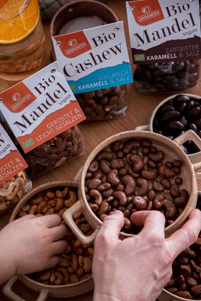 unsere Nüsse und Saaten mittels weltweit einzigartigem Röstverfahren ihren unvergleichlichen Geschmack erhalten. Wer LANDGARTEN kennt, der weiß: Ohne Snacks läuft bei uns gar nichts!