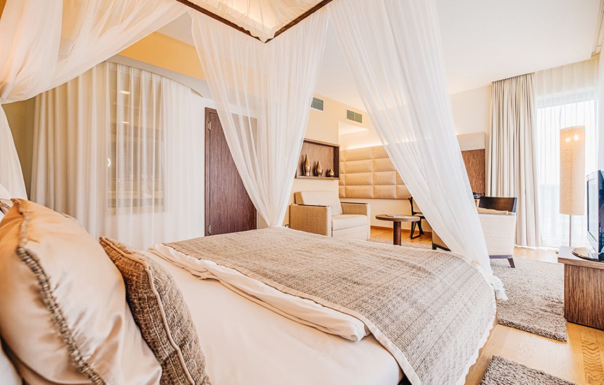 Abenteuer & Rückzug sind in der Lodge der VAMED Vitality World nicht nur leere Worte, vielmehr verschmelzen Luxus-Auszeit, Thermen-Erlebnisse & Seewinkel Safaris. Suchen Sie sich Ihren Lieblingsplatz in einer der Rückzugszonen, schließen Sie die Augen und lauschen Sie der Natur. Ob eine kleine Alltagspause oder ein ausgedehnter Urlaub - finden Sie auf 2.000 m² Wasserfläche mit der Kraft und der Ruhe der Natur zu neuer Lebendigkeit. Schon in nur einem Wassertropfen liegt das Geheimnis, das sich „die heiße Quelle Pannoniens“ nennt.