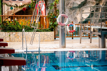 Nach einer 15-minütigen Fahrt erreichen Sie die Badelandschaft mit Innen- und Außenbecken, Wasserrutschen, Kinderbecken, 4 Saunen und großzügigen Außenbereichen mit Liegewiese und Restaurant. Badebereich Der familienfreundliche Badebereich garantiert ein tolles Erlebnis! Neben der großen 50-Meter-Erlebnisrutsche können Sie das Meeresgefühl auch im Wellenbad, dem 25-Meter-Becken mit verschiedenen Sprungbrettern, einem Strömungskanal und Wasserfällen genießen. Saunabereich Vollkommene Entspannung im Saunabereich! Neben vier verschiedenen Saunen erwarten Sie ein Blockhaus-Ruheraum, ein großzügiger Saunagarten inklusive Außenpool und Whirlpool sowie zahlreiche Ruhebereiche.
